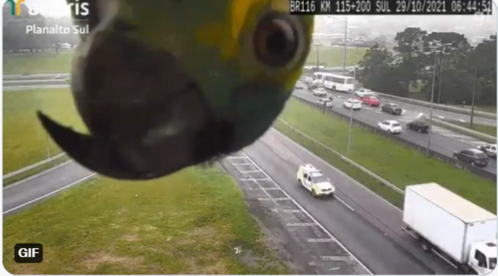 Papagaio fez uma aparição na câmara de monitoramento da BR-116, no Paraná, de acordo os registros de imagem da concessionária que administra o trecho.