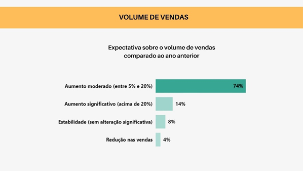 Sondagem inédita do Instituto Fecomércio-DF indica que 74% dos lojistas projetam um aumento moderado, entre 5% e 20%, no volume de vendas do Halloween em comparação ao ano anterior. Na sequência, 14% preveem um aumento significativo, acima de 20%, enquanto 8% apontam estabilidade e apenas 4% esperam redução das vendas. A pesquisa indica relevância da data para o comércio do Distrito Federal, uma vez que, representando a maioria das intenções, 54% dos empresários classificaram o Halloween como de um período de importância média e 30% o destacaram entre as três principais datas comemorativas do ano.