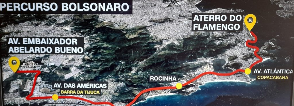A “Motociata”, como vem sendo chamado nas redes sociais, com início previsto para 8h foi adiado para 10h. O presidente saiu de Brasilia de avião e chegou ao Galeão por volta de 9h30. Foi transportado de helicóptero para o Parque Olímpico Parque. A Motociata recebe grande número de motociclistas e, por isso, deve provocar o fechamento da Av. Embaixador Abelardo Bueno.