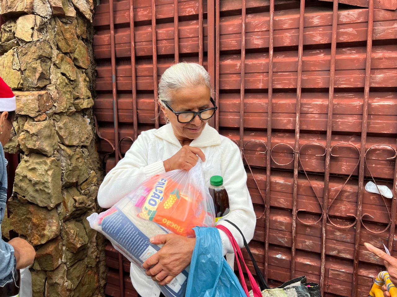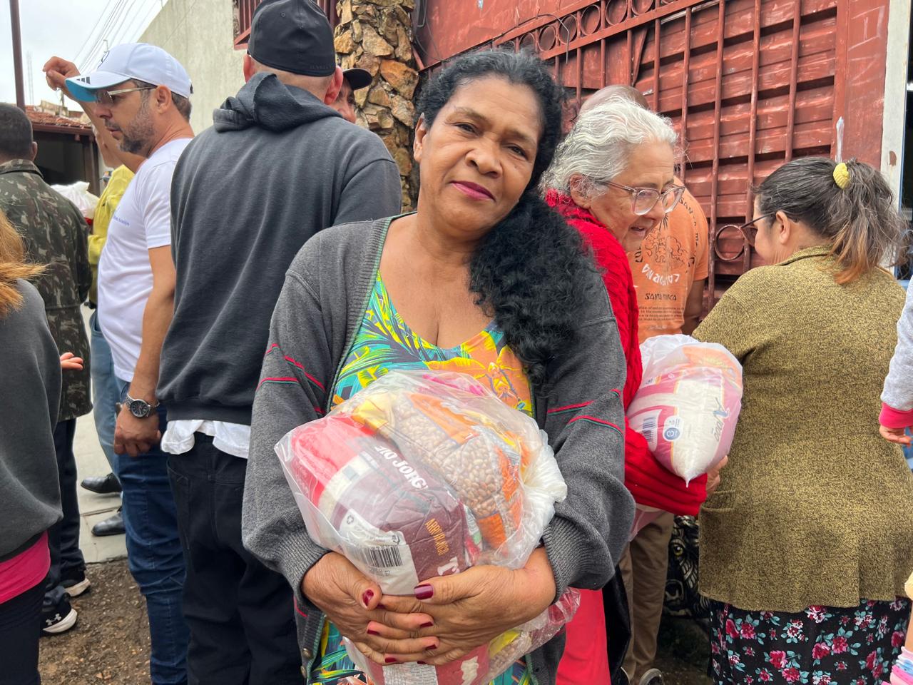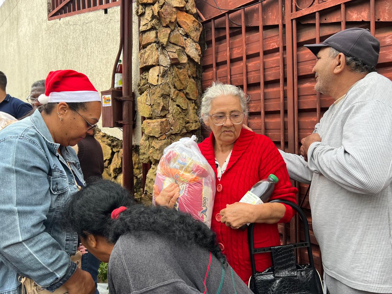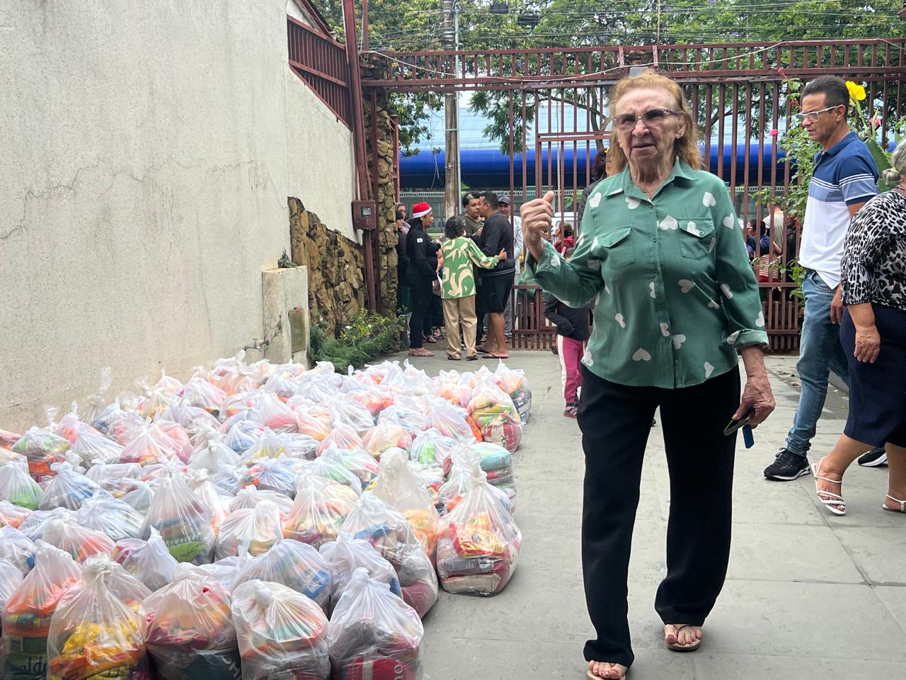Entre as pessoas atendidas, histórias que tocam profundamente. Dona Helena, com voz embargada, falou da gratidão e da luta diária. Sua fala representa tantas outras famílias que ali estavam: mães, avós, crianças… pessoas que enfrentam dificuldades, mas não desistem de acreditar. Naquele momento, cada cesta não era apenas alimento; era esperança, era alívio, era a certeza de que a solidariedade ainda existe.
