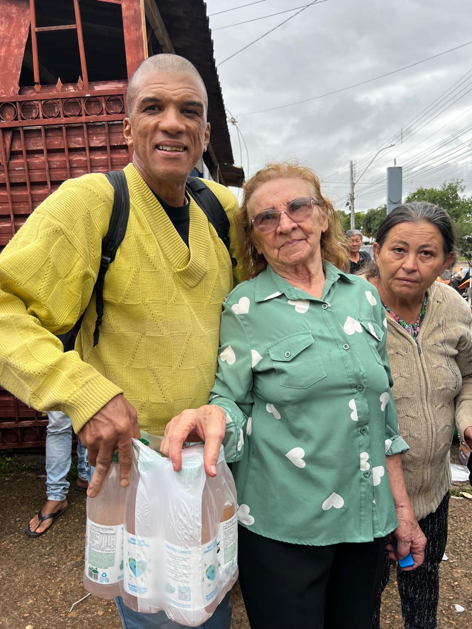 Aos 83 anos, Aidê Araújo segue como um farol de solidariedade. Mesmo com o peso do tempo, carrega a leveza de quem vive para servir. Ao lado do filho, Vielton, e de uma equipe dedicada, ela distribuiu não apenas senhas e alimentos, mas olhares carinhosos, palavras de conforto e respeito – especialmente aos idosos e às famílias mais vulneráveis. Em cada gesto, um cuidado. Em cada sorriso, um agradecimento. Em cada abraço, o sentimento de que a vida pode ser mais justa quando o amor guia os passos.