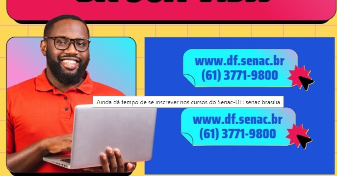 As inscrições podem ser feitas diretamente pelo site www.df.senac.br. Mas é bom se apressar: as vagas são limitadas e o tempo está acabando.