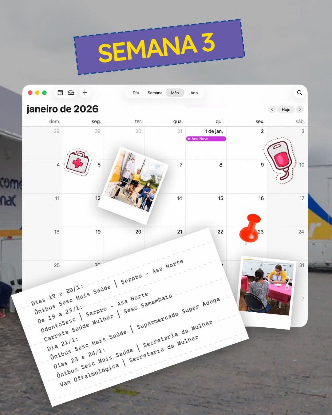 Janeiro começa com mais cuidado, prevenção e bem-estar para a população do Distrito Federal. O Sesc-DF inicia o ano reforçando seu compromisso social com a promoção da saúde ao colocar em circulação, ao longo de todo o mês, suas Unidades Móveis de Saúde, que percorrem diferentes regiões levando atendimento qualificado e acessível para mais perto da comunidade.