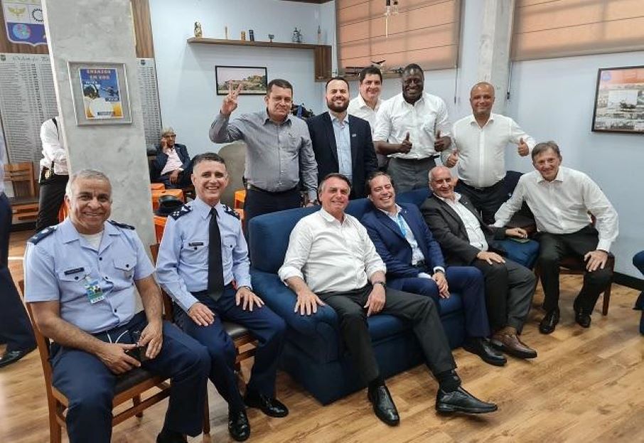 Em foto publicada no Twitter, o presidente aparece em meio a apoiadores, entre os quais o presidente da Caixa Econômica Federal (CEF), Pedro Guimarães, o ministro-chefe da Secretaria-Geral da Presidência da República, general Luiz Eduardo Ramos, e o deputado federal Major Vitor Hugo (PSL-GO).