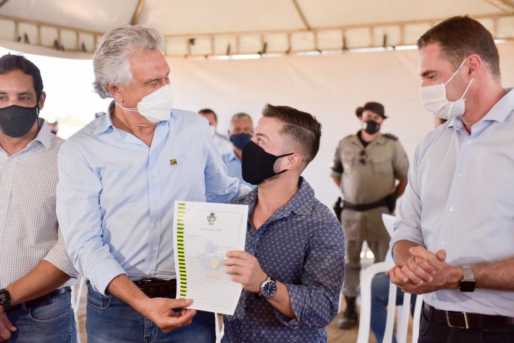 Ainda durante a assinatura da ordem de serviço, o governador Ronaldo Caiado e a primeira-dama, Gracinha Caiado, fizeram a entrega de títulos de regularização fundiária para produtores rurais. Com a transferência da propriedade, os atuais ocupantes garantem a posse definitiva da terra e passam a ter acesso às políticas públicas implementadas pelo Estado, como, por exemplo, o crédito rural.