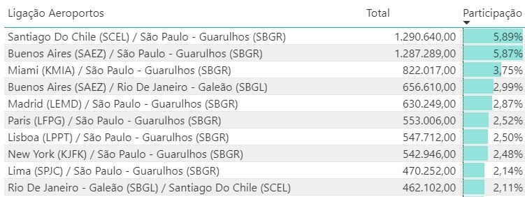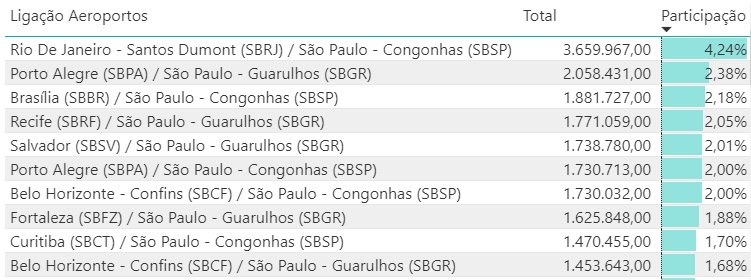 Ainda segundo dados da Anac, a tradicional ponte-aérea continua sendo a rota mais movimentada de passageiros do Brasil em 2019, com 3,6 milhões de passageiros viajando entre o aeroporto Santos Dumont, no Rio de Janeiro e o aeroporto de Congonhas, em São Paulo.