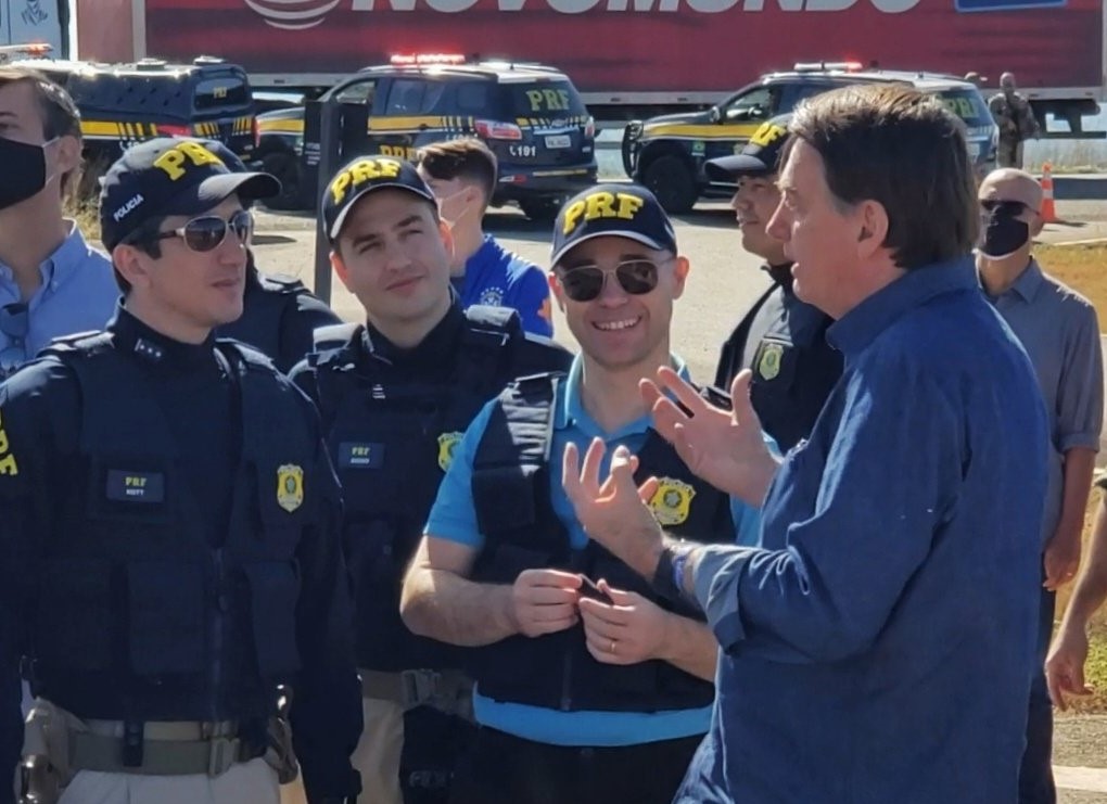 No acostamento no sentido a Brasília, Bolsonaro tirou fotos com policiais rodoviários federais e gravou vídeos a pedido dos agentes. A imprensa foi mantida a alguns metros de distância.