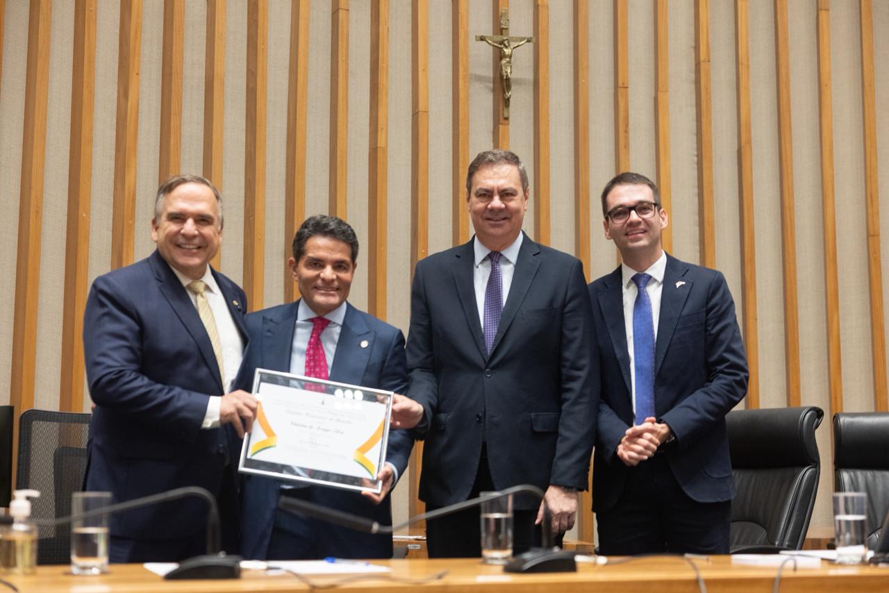 Em seu discurso, o presidente Wellington Luiz destacou o simbolismo do momento e a representatividade de Valcides para Brasília.