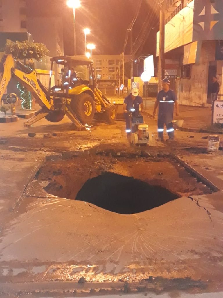 Desde que foi acionada, no início da noite da última quarta-feira (17), por conta de um buraco que surgiu no asfalto, a equipe de manutenção foi ao local e constatou o rompimento da tubulação de 800 milímetros. Imediatamente, a área foi toda isolada e o trânsito interrompido.