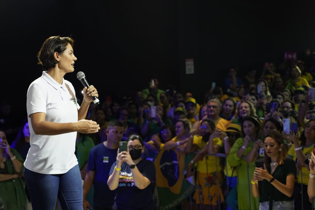A primeira-dama Michelle Bolsonaro destacou a importância da participação das mulheres na campanha e disse que o presidente Jair Bolsonaro tem sido um grande defensor das mulheres e crianças brasileiras. “Já foram aprovados 78 projetos de lei da bancada feminina, voltados para as mulheres, e temos a expectativa de chegar a 100 projetos aprovados até o final do ano”, revelou Michelle.