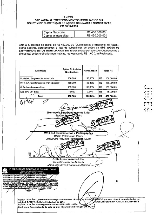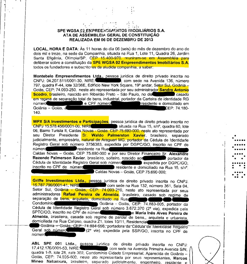 Embora oficialmente alguns dos empresários não constem como sócios diretos da WGSA 02, nomes como Marcos Freitas, André Ladeira, Charles e Alexandre Adailton também são apontados como participantes ativos nas negociações de cotas e frações imobiliárias.