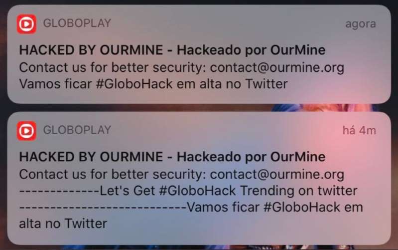 Os assinantes do Globoplay receberam, no início da madrugada deste domingo, 17, mensagens inusitadas no aplicativo da plataforma de streaming do Grupo Globo. A tag #GloboHack, que ficou entre os assuntos mais comentados no Twitter brasileiro, e a mensagem “HACKED BY OURMINE” davam a impressão de que o sistema havia sido invadido por hackers.