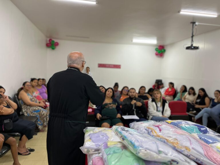 Marcando o encerramento com emoção e gratidão, o evento também incluiu a entrega de lembrancinhas, preparadas com carinho de acordo com a participação de cada gestante ao longo do curso. Os enxovais doados foram confeccionados pelas voluntárias do grupo Mãos Generosas, em um gesto de solidariedade, amor e cuidado com as futuras mamães.
