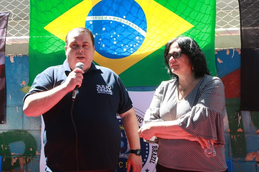O deputado federal Julio Cesar Ribeiro e a ex-ministra e pré-candidata ao Senado, Damares Alves, estiveram juntos na cerimônia de formatura Cívico Militar dos membros do Instituto Escola Cívica Brasileira-IECB, que ocorreu hoje pela manhã no Centro Educacional 11 de Ceilândia.