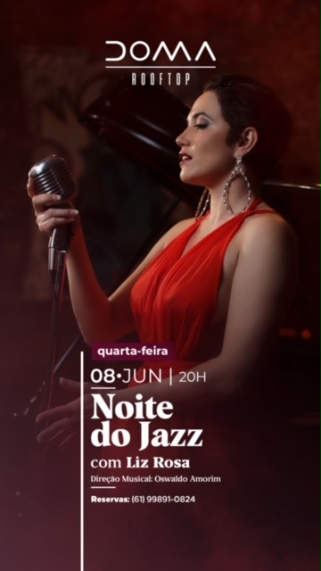 Mais uma quarta com música de qualidade no Doma Rooftop. O projeto “Noite de Jazz” tem o prazer de receber Liz Rosa, uma das mais belas vozes deste país. De passagem pelo Brasil, a artista que está radicada na cidade de Nova Iorque desde 2016, apresentará seu show no restaurante Doma Rooftop celebrando 20 anos de carreira ao lado de grandes artistas: Di Stéffano (bateria), Jeferson Alves (teclado) e Oswaldo Amorim (contrabaixo).