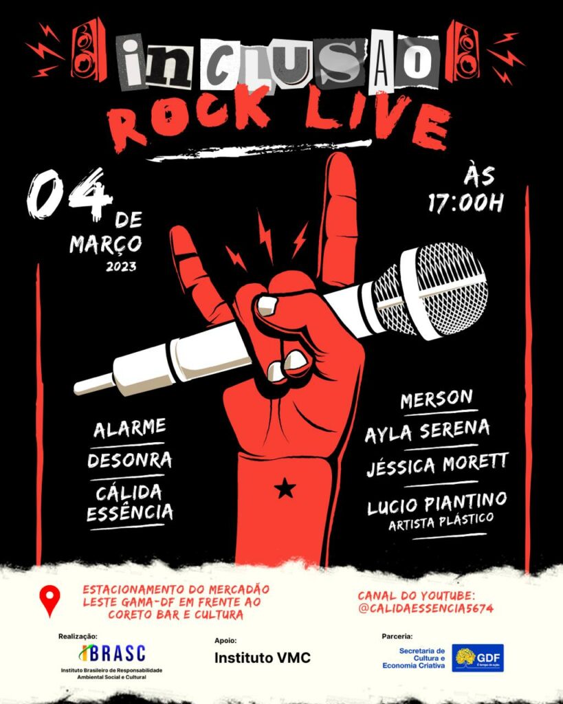 Com o objetivo de promover a cultura local e incentivar a diversidade, o projeto Inclusão Rock Live, que será realizado no dia 04 de março, foi desenvolvido pensando na falta de atividades culturais gratuitas para a população do Gama. Em parceria com a Secretaria de Estado de Cultura e Economia Criativa do Distrito Federal, Secec-DF, o projeto levará arte, cultura, lazer e entretenimento para a população de forma democrática, valorizando os artistas locais com apresentações de altíssimo nível.