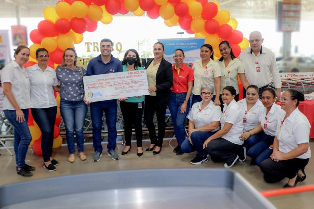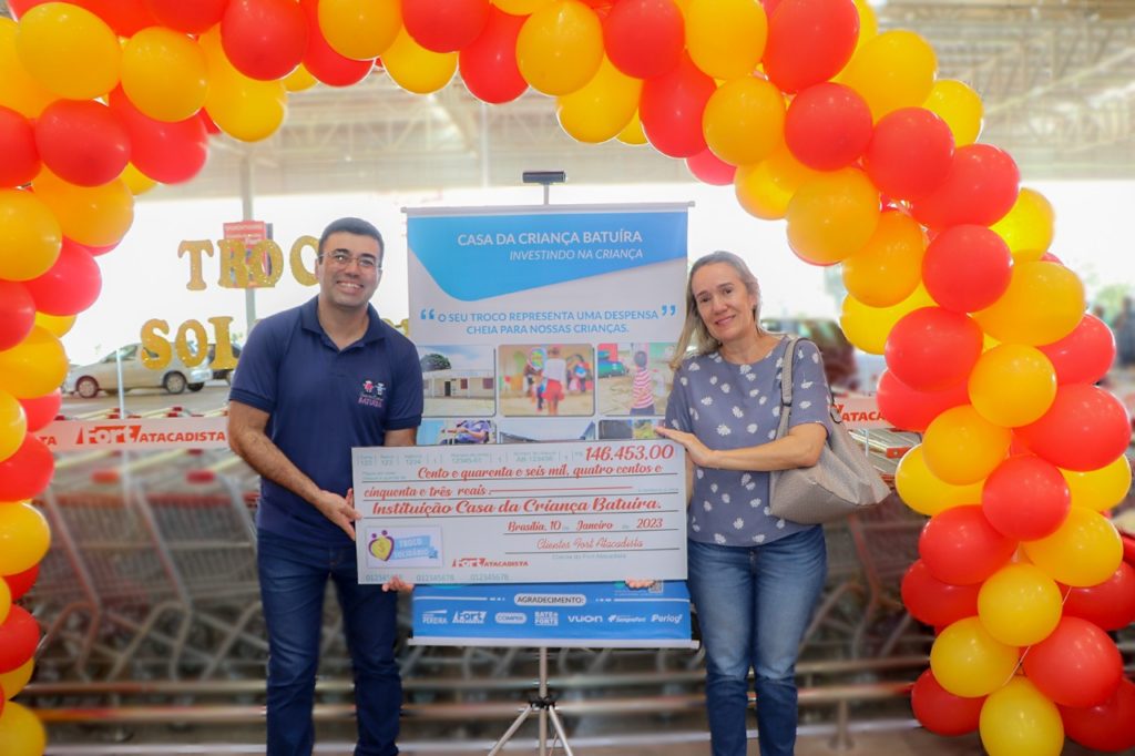 A primeira entrega do Troco Solidário realizada em 2023, das unidades do Fort Atacadista no Distrito Federal e Goiás, foi marcada pela emoção. A solidariedade entre os clientes que participaram do projeto, por meio de doações junto aos caixas na hora das compras, resultou no valor de R$ 146.453,00 repassado para a Casa da Criança Batuíra, na unidade do Recanto das Emas. O cheque simbólico representa o valor total arrecadado entre os meses de julho a dezembro.